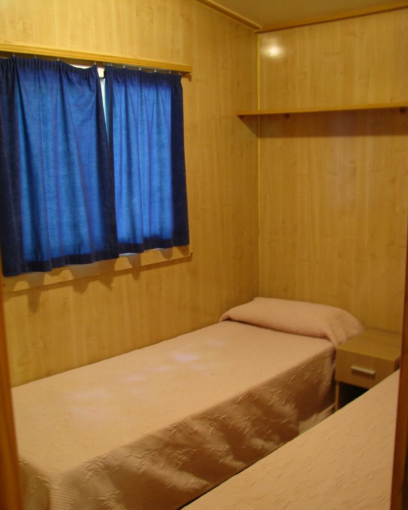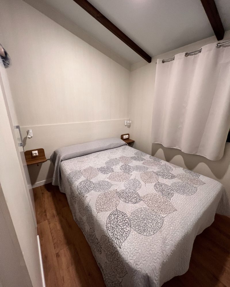 Disponemos de alojamientos con capacidad para 2 a 5 personas, distribuidos en una habitación con cama de matrimonio, una habitación con dos camas individuales, salón comedor y cocina totalmente equipada. Además, podrás disfrutar del aire libre con una parcela privada amueblada con mesa y sillas de exterior.